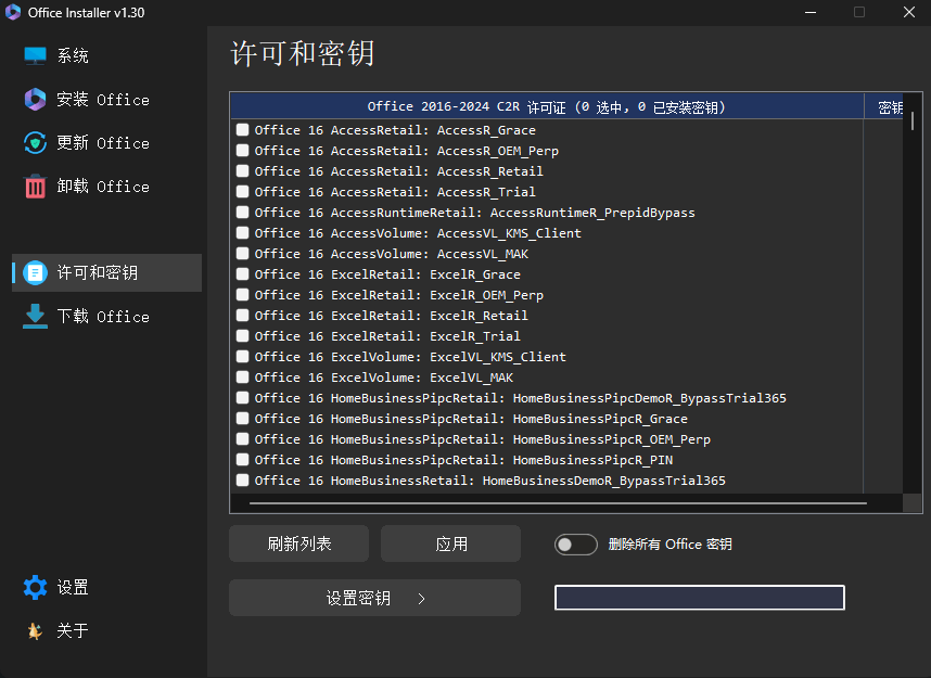 删除了许可证 “删除密钥” - 安装旧 Office 时使用的密钥将从系统中删除。