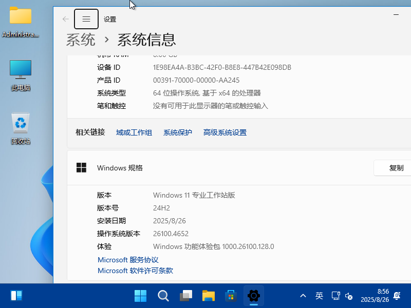系统版本退回至26100.4652