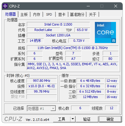 CPU检测工具:CPU-Z-2.1.7.0 中文绿色单文件版
