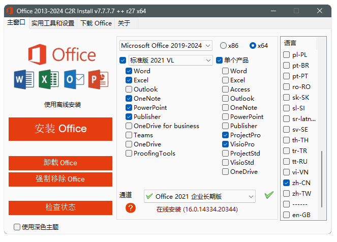 Office 2013-2021 C2R Install (Office下载工具)是一款Office组件自定义下载,安装,激活的部署工具,